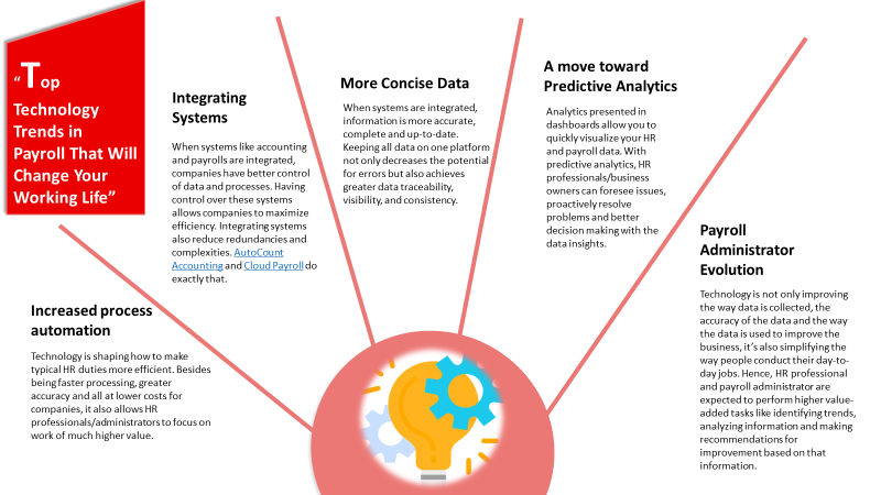 There are many emerging technologies like AutoCount Cloud Payroll that are making jobs easier for HR professionals to business owners and payroll administrators. Technology is transforming the ways professionals analyze data more efficiently, accurately and consistently. As tech trends continue to evolve, all professionals need to stay up-to-date, not just payroll managers.