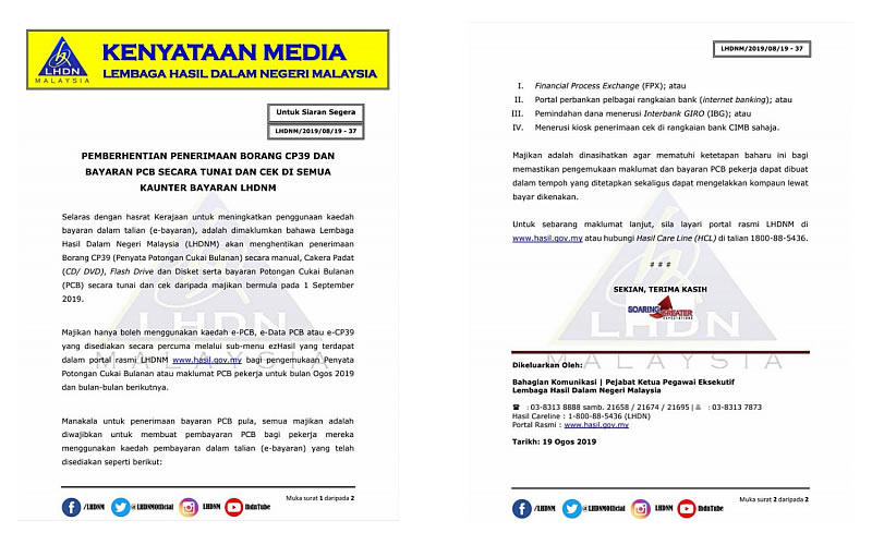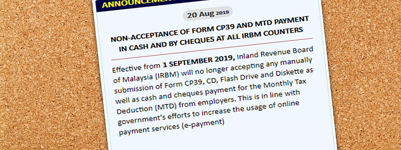 Beginning 1st September 2019, the Inland Revenue Board of Malaysia (IRBM) will accept only online submissions for monthly tax deductions and e-payment from employers.